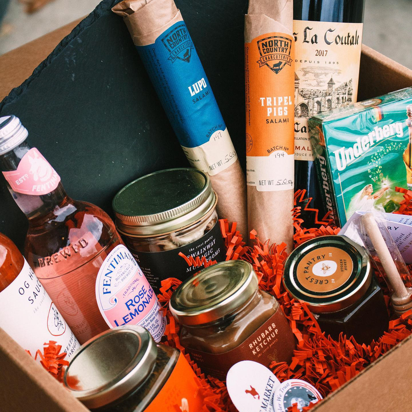 During Covid, we offered to-go "Market Boxes" that allowed you to experience charcuterie night from home.